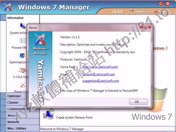 • Yamicsoft Windows 7 Manager v3.0.5 英文正式版(Widnows7 總管是優化和設置軟體)